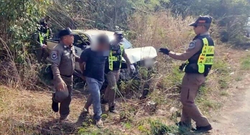 | หนุ่มขับรถแหกโค้ง หลัฃซิ่งหนีด่าน พบยาบ้าเพียบ |