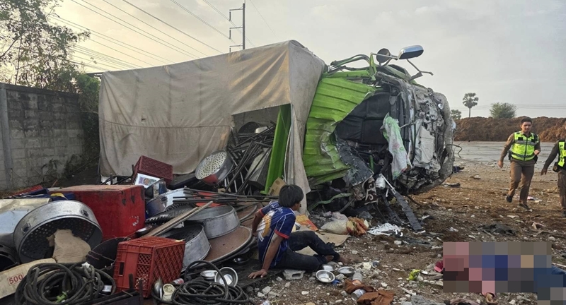 | รถบรรทุกโต๊ะจีน เสียหลักชนกำแพง เสียชีวิต 2 ราย |