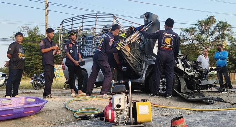 | กระบะพุ่งเสียบท้องพ่วง เสียชีวิตคาซากรถ คาดหลับใน |
