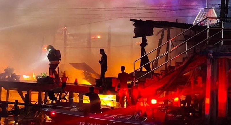 | ไฟไหม้บ้านริมคลอง จนท.ระดมรถและเรือดับเพลิง ไม่พบผู้เสียชีวิต |