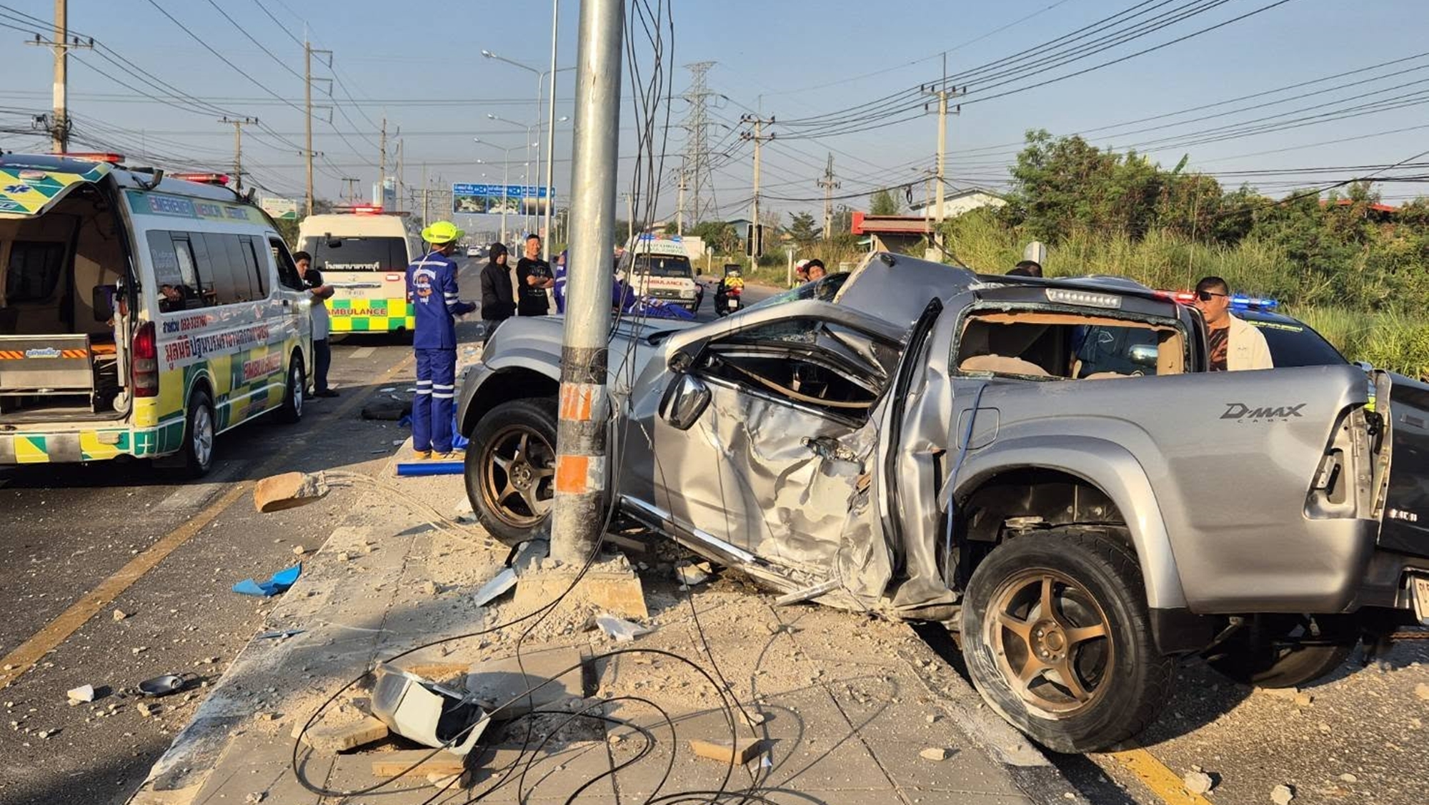 | หนุ่มสาวขับกระบะเสียหลัก ชนเสาไฟฟ้าเสียชีวิต 2 ราย |