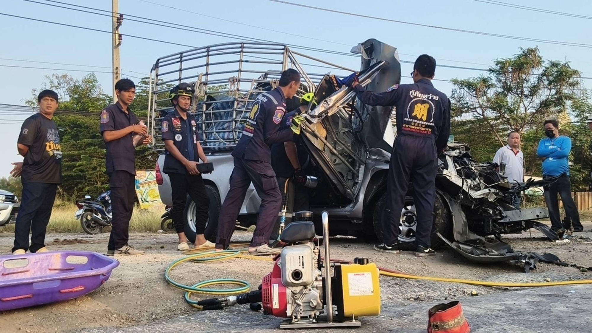สอบถามนายสัญญา ชื่นพยอม อายุ 50 ปี บ้านเลขที่ 34/7 ม.1 หนองอ้อ อ.บ้านโป่ง จ.ราชบุรี คนขับรถบรรทุกพ่วงให้การว่าก่อนเกิดเหตุ ตนกำลังรอต่อคิวจะกลับรถ เพื่อนำดินไปส่งให้ลูกค้าที่สาย5 เพราะมีรถพ่วงดินด้วยกัน3คัน คัน1กับ2กลับรถไปได้ส่วนตนคัน3ก็ขับตามๆกันมา จู่ๆรถยนต์กระบะ ก็พุ่งเข้ามาชนอย่างแรง ตนจึงรีบแจ้งเจ้าหน้าที่มาดังกล่าว
